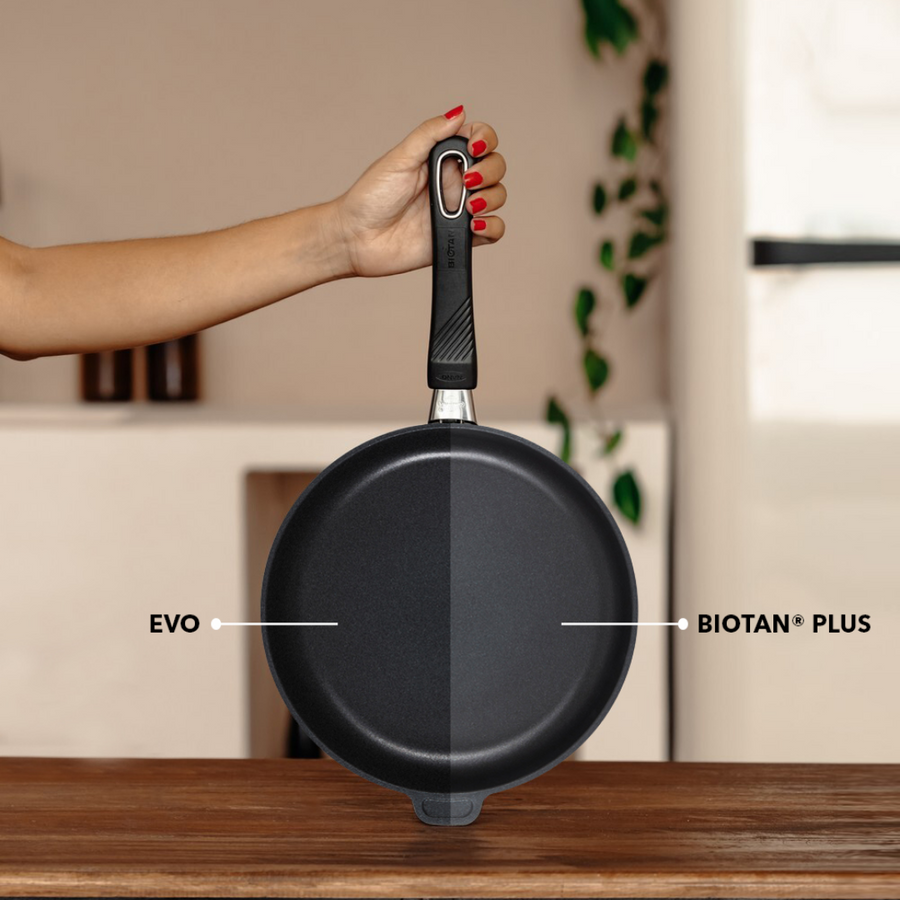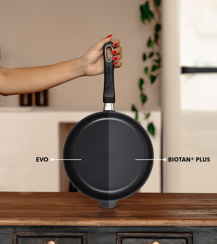 Descubra nuestra colección de cacerolas y sartenes, especialmente diseñadas para ofrecer un rendimiento óptimo en placas de inducción. Gracias a su recubrimiento Biotan®️ Plus, nuestros utensilios permiten cocinar sin añadir grasa y aseguran una distribución homogénea del calor. Encuentre nuestra sarten de alta gama, así como una gama completa que incluye sartenes honda y ollas para coccion lenta, combinando un diseño cuidado con practicidad. Gastrolux adopta prácticas de fabricación orientadas a reducir los residuos y prolongar la vida útil de los utensilios. Este producto ha sido rigurosamente probado por Eurofins®️, garantizando su conformidad con las normas de seguridad alimentaria.